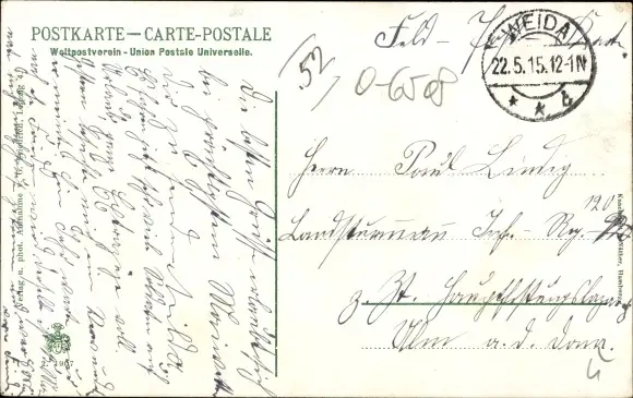 Zustand, siehe Scan, gelaufen, 1915 - ca 14 cm X 9 cm
