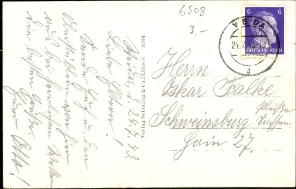 Zustand, siehe Scan, gelaufen, 1943 - ca 14 cm X 9 cm