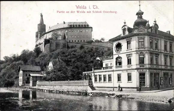 Ak Weida in Thüringen, Partie an der Werra, Schloss Osterburg