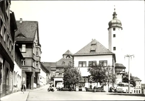 Ak Weida in Thüringen, Rathaus am Neumarkt, Bus