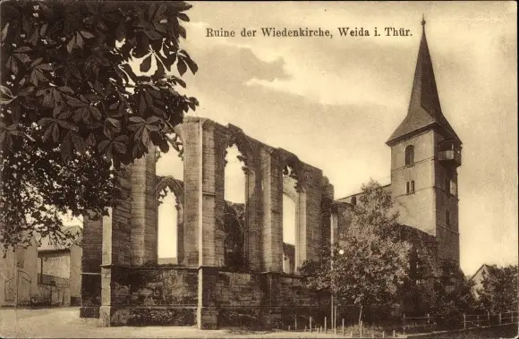 Ak Weida in Thüringen, Ruine der Wiedenkirche