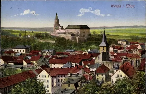 Ak Weida in Thüringen, Schloss, Kirche, Stadtansicht