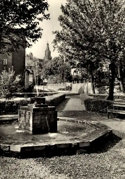 Ak Weida in Thüringen, Semmelweispark, Teilansicht, Brunnen