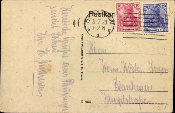 Zustand, siehe Scan, gelaufen, 1920 - ca 14 cm X 9 cm