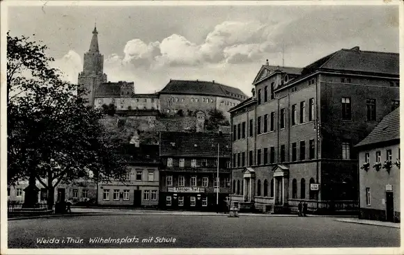 Ak Weida in Thüringen, Wilhelmsplatz mit Schule