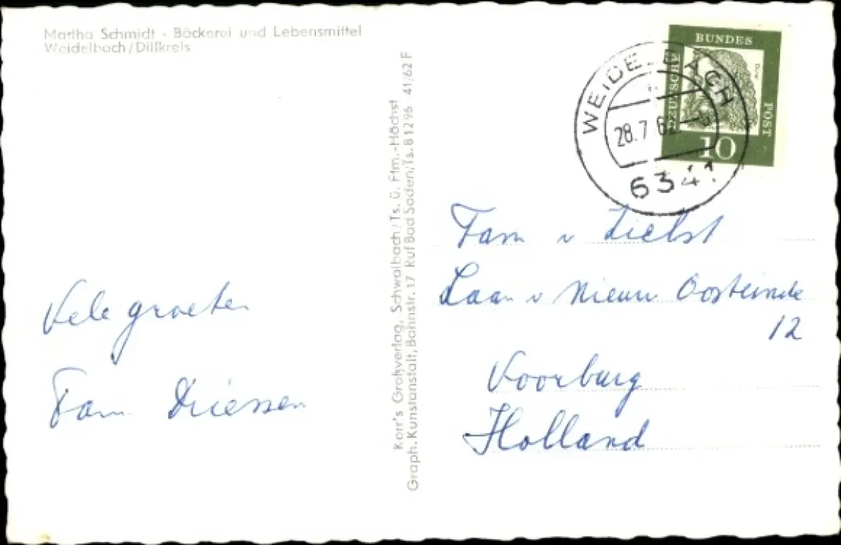 Zustand, siehe Scan, gelaufen, 1962 - ca 14 cm X 9 cm