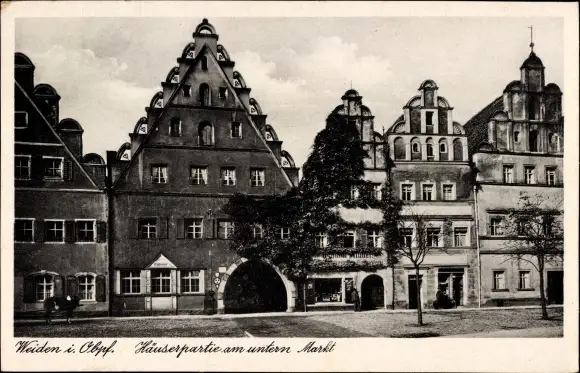 Ak Weiden in der Oberpfalz, Häuserpartie, Unterer Markt, Giebelhäuser
