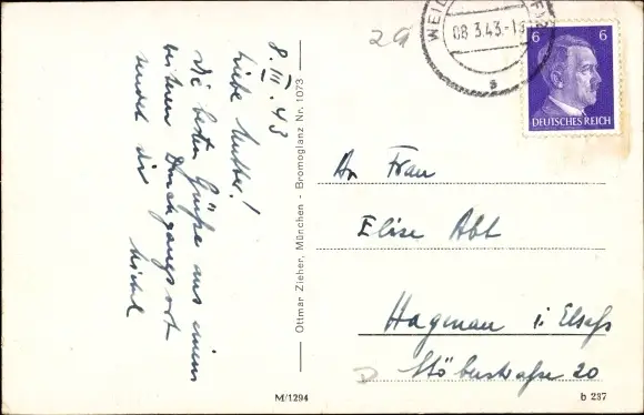Zustand, siehe Scan, gelaufen, 1943 - ca 14 cm X 9 cm