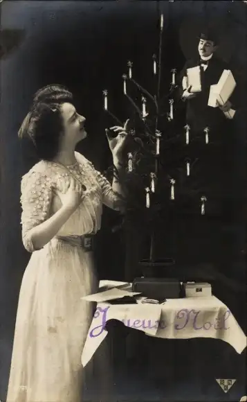 Ak Weihnachten, Weihnachtsbaum, Frau