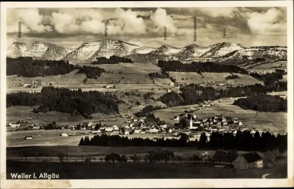 Ak Weiler Simmerberg im Allgäu, Gesamtansicht Ort und Umgebung