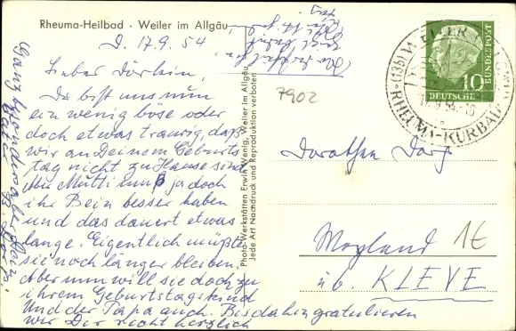 Zustand, siehe Scan, gelaufen, 1954 - ca 14 cm X 9 cm