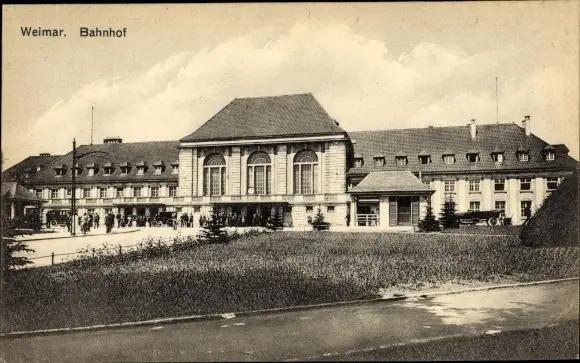 Ak Weimar in Thüringen, Bahnhof, Straßenseite