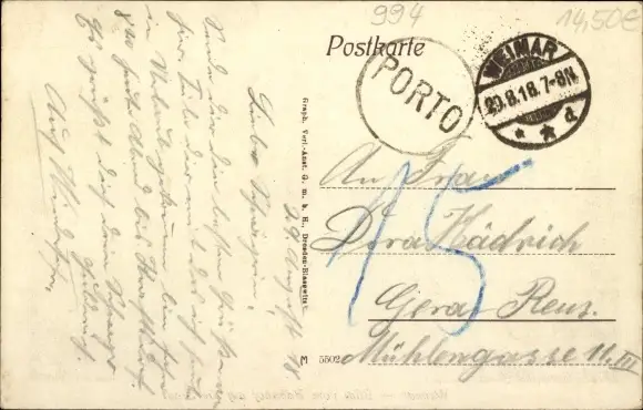 Zustand, siehe Scan, gelaufen, 1918 - ca 14 cm X 9 cm