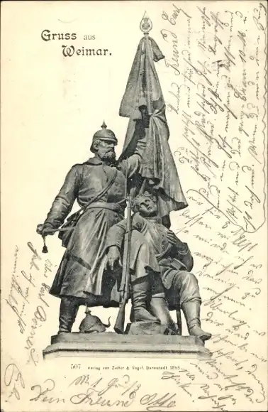 Ak Weimar in Thüringen, Denkmal, Soldat mit Fahne
