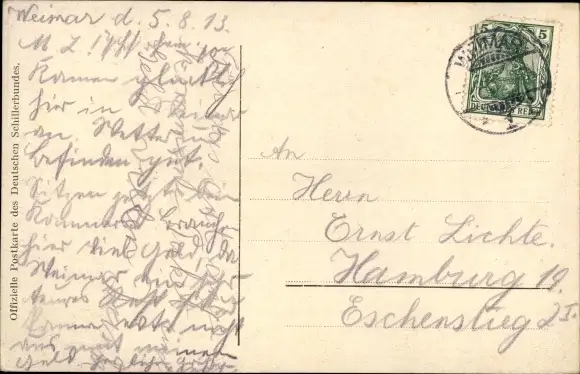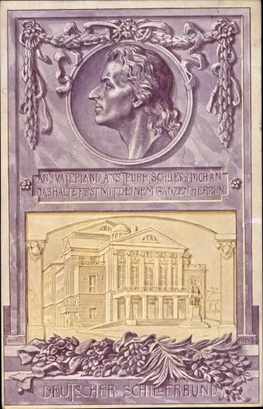 Ak Weimar in Thüringen, Deutscher Schillerbund, Zitat Ans Vaterland, ans teure, schließ dich an...
