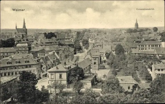Ak Weimar in Thüringen, Gesamtansicht der Ortschaft aus der Vogelschau