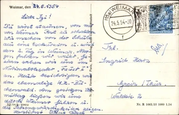 Zustand, siehe Scan, gelaufen, 1954 - ca 14 cm X 9 cm