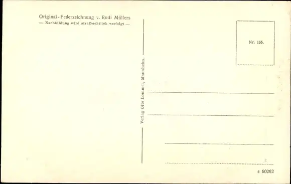 Zustand, siehe Scan, ungelaufen- Federzeichnung von Rudi Müllers - ca 15 cm X 9 cm