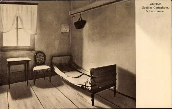 Ak Weimar in Thüringen, Goethes Gartenhaus, Schlafzimmer