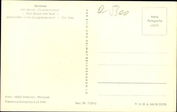 Ak Weimar in Thüringen, HO Hotel International, Außenansicht