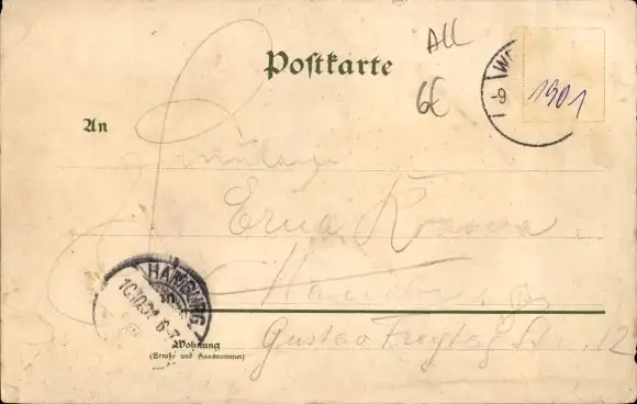 Zustand, siehe Scan, gelaufen, 1901 - ca 15 cm X 9 cm