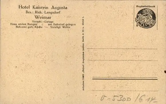 Ak Weimar in Thüringen, Hotel Kaiserin Augusta