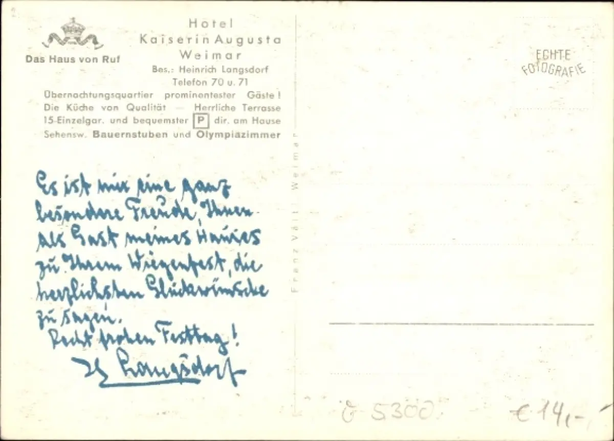 Zustand, siehe Scan- Bes.: Heinrich Langsdorf - ca 15 cm X 11 cm