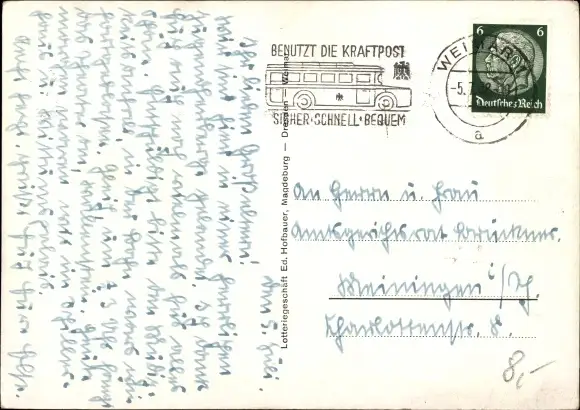 Zustand, siehe Scan, gelaufen, 1938 - ca 15 cm X 11 cm