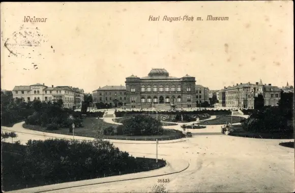 Ak Weimar in Thüringen, Karl-August-Platz mit Museum