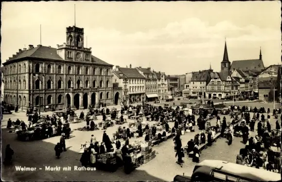 Ak Weimar in Thüringen, Markt mit Rathaus
