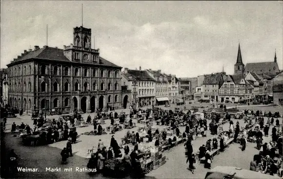 Ak Weimar in Thüringen, Markt mit Rathaus