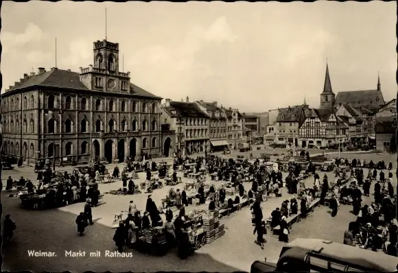 Ak Weimar in Thüringen, Markt mit Rathaus, Markttag, Stände