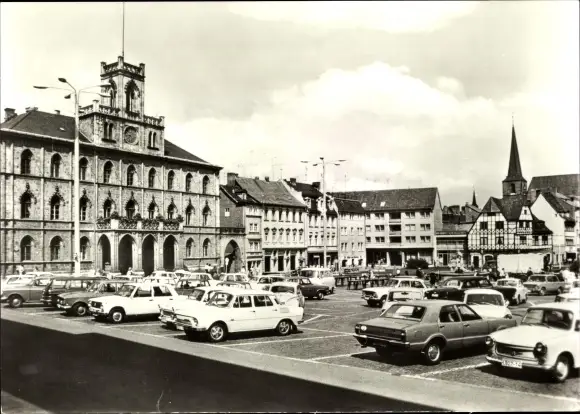 Ak Weimar in Thüringen, Marktplatz Rathaus-Löschhaus, Parkplatz, Autos