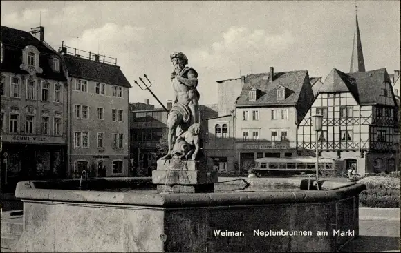 Ak Weimar in Thüringen, Neptunbrunnen am Markt