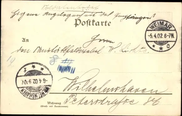 Zustand, siehe Scan, gelaufen, 1902 - ca 14 cm X 9 cm