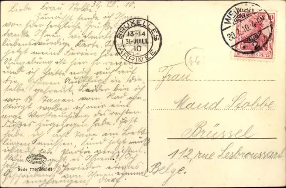 Zustand, siehe Scan, gelaufen, 1910 - ca 14 cm X 9 cm