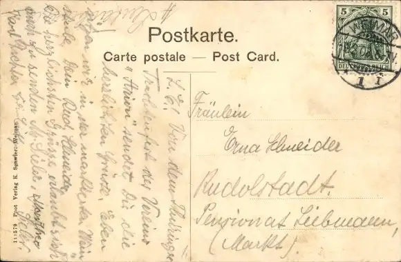 Zustand, siehe Scan, gelaufen, 1908 - ca 14 cm X 9 cm