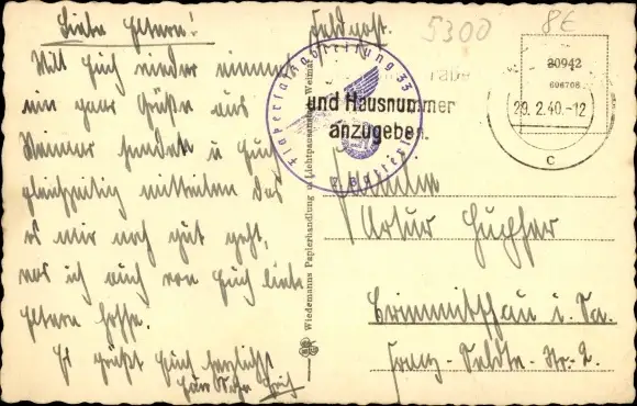 Zustand, siehe Scan, gelaufen, 1940 - ca 14 cm X 9 cm