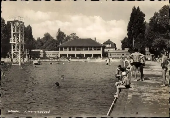 Ak Weimar in Thüringen, Schwanenseebad, Schwimmbad