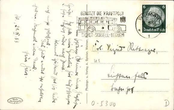 Zustand, siehe Scan, gelaufen, 1933 - ca 14 cm X 9 cm