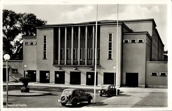 Ak Weimar in Thüringen, Weimarhalle, Autos