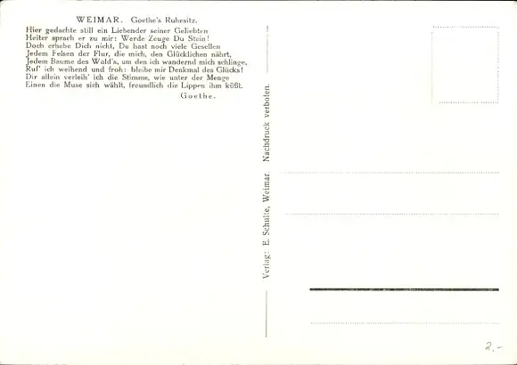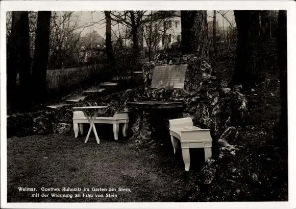 Ak Weimar in Thüringenm Goethes Ruhesitz am Stern, Widmung an Frau von Stein