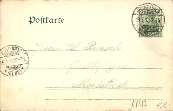 Zustand, siehe Scan, gelaufen, 1903 - ca 14 cm X 9 cm