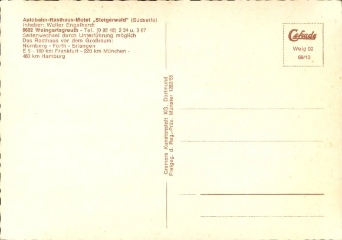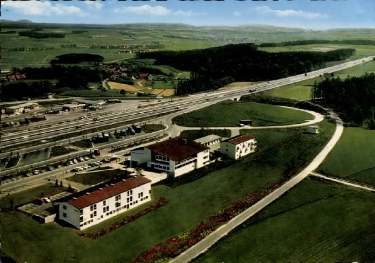 Ak Weingartsgreuth Wachenroth in Mittelfranken, Autobahn-Rasthaus-Motel Steigerwald, Autobahn, L