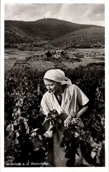 Ak Weinlese an der Weinstraße, Frau im Weinfeld