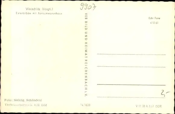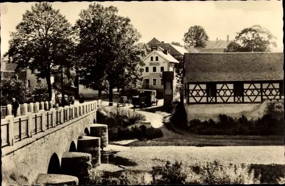 Ak Weischlitz im Vogtland, Elsterbrücke mit Konsumwarenhaus