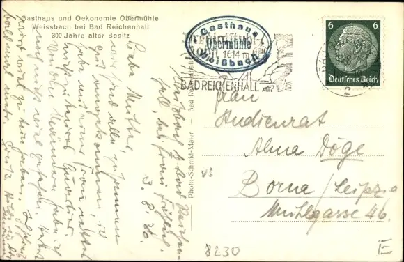 Ak Weißbach Bad Reichenhall in Oberbayern, Stadtansicht, Gasthaus Obermühle