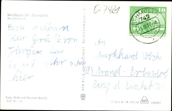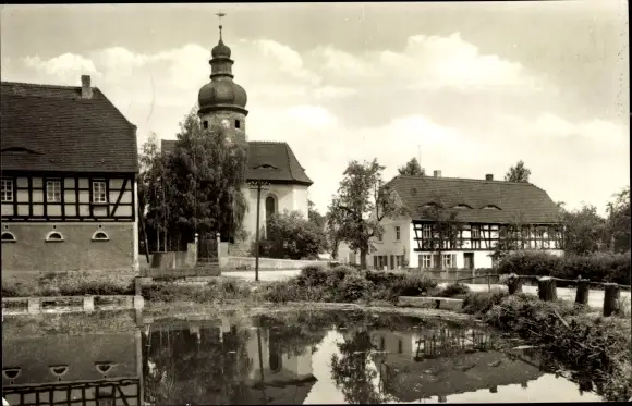 Ak Weißbach Schmölln in Thüringen, Dorfteich, Kirche