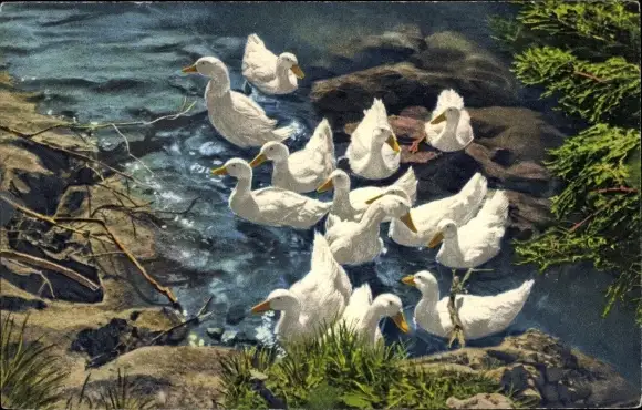 Ak Weiße Enten im Wasser