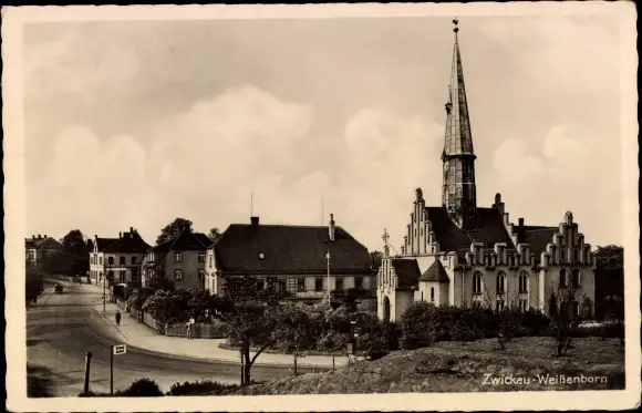 Ak Weißenborn Zwickau in Sachsen, Kirche, Straßenpartie